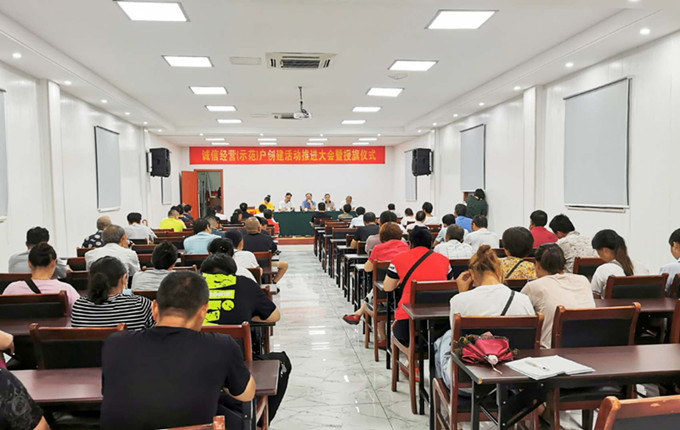 2020年7月28日上午9:30分誠信經(jīng)營(yíng)(示范)戶(hù)創(chuàng )建活動(dòng)推進(jìn)大會(huì )暨“積極創(chuàng )建門(mén)店”授旗儀式在常州食品有限公司會(huì )議中心隆重舉行。